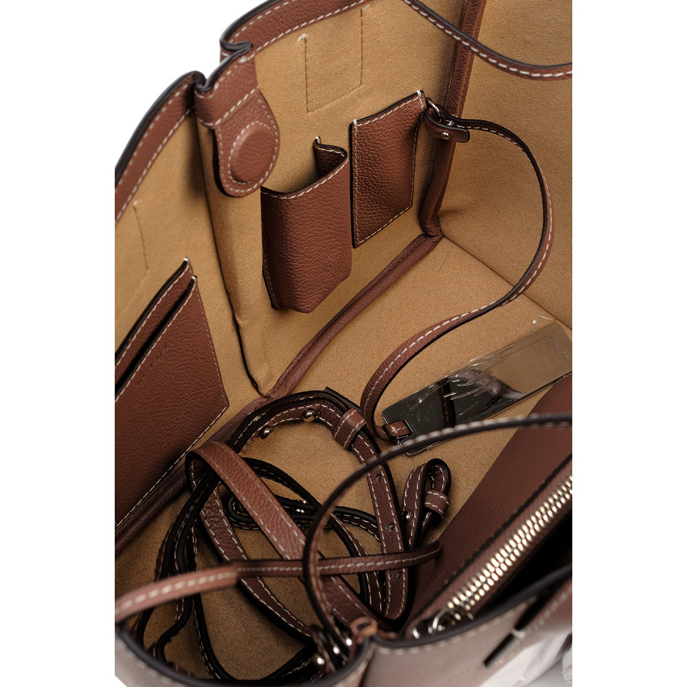 Сумка под артикулом B48123 имеет одно отделение внутри, карман для документов и съёмную косметичку. Модель не вмещает формат A4 и имеет две ручки, высота ручек - 10 см. Длинный плечевой ремень, высота ремня - 60 см. Стильная и оригинальная сумка из высококачественной кожи отлично подойдёт к любому наряду и поднимет настроение вам и окружающим. Яркий аксессуар для вашего неповторимого образа. Сумка не имеет металлические ножки.